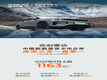 连续7月销量破千 吉利雷达9月上险1163台 环比增长16.3%