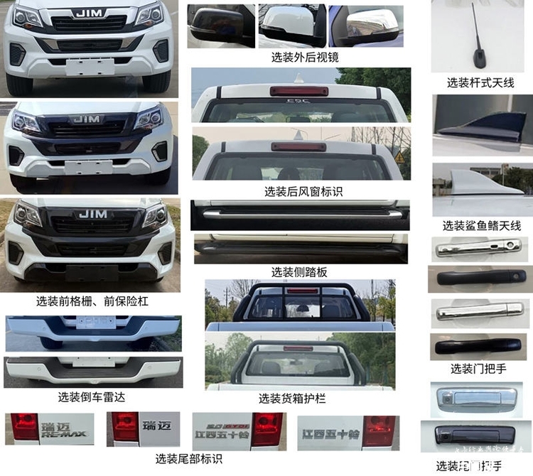 外形方面,新款瑞迈并没有太大变化,前脸依然是双层镀铬中网,保险杠向前突出,有一定凌厉的气势。镀铬部分还可选装纯黑材质,区别不同车款。货箱两侧的外锚点也是不同配置的区别。